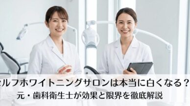 セルフホワイトニング(サロン型) セルフホワイトニングサロンは本当に白くなる?元・歯科衛生士が効果と限界を徹底解説 セルフホワイトニング(サロン型)は本当に白くなるのか。元・歯科衛生士が仕組み、効果、限界、安全なサロンの選び方まで正直に解説します。 2026.01.05 セルフホワイトニング(サロン型)